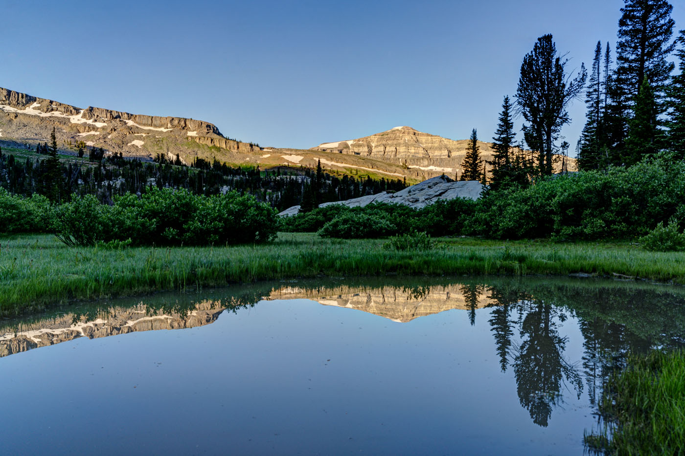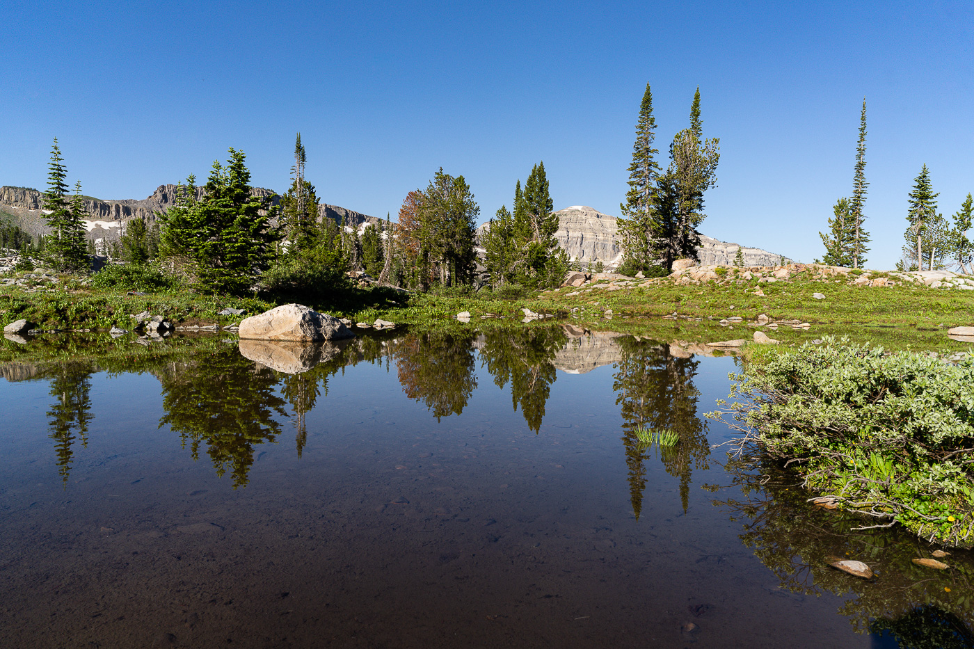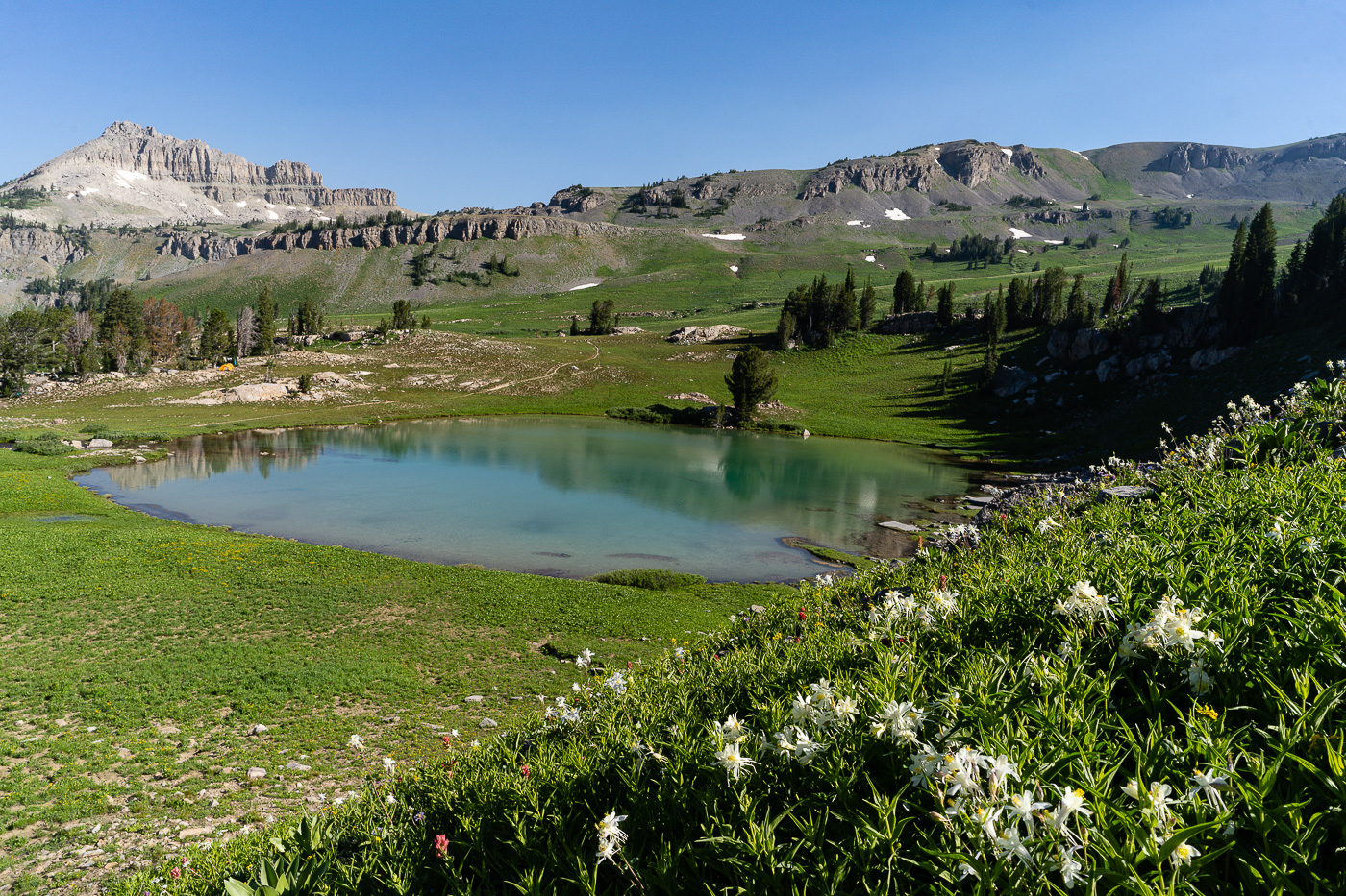 My wife and I just did a backpacking trip to Alaska Basin on the west side of the Tetons. The trip is not in Grand Teton National Park, but that makes it better in my opinion. There are no permits needed for the region and the scenery is just as iconic. The trail features several cascades, great wildflowers, and terrific mountain views. Alaska Basin contains several small ponds and lakes that make for some great photography.