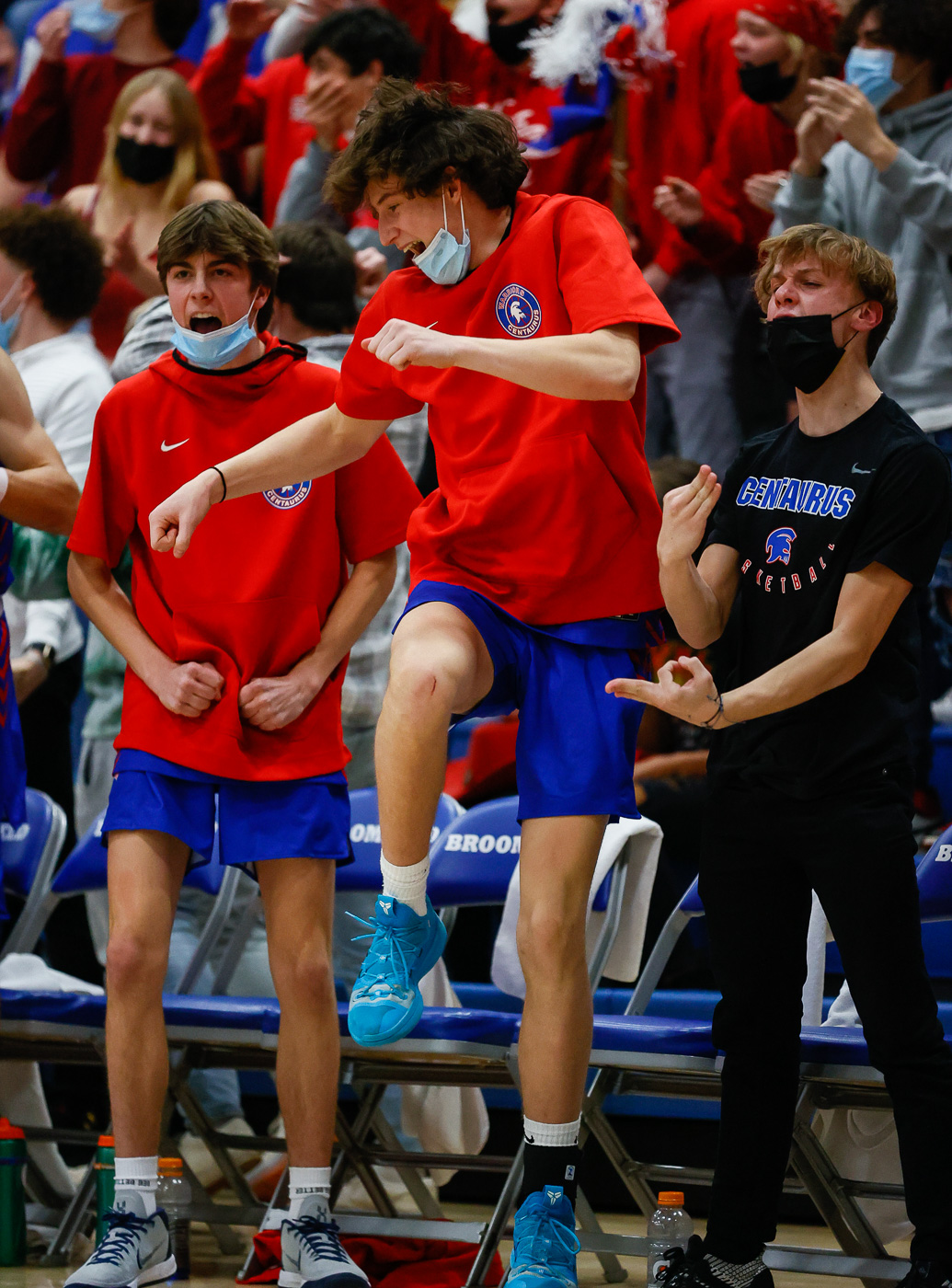 It is not often a boy’s basketball game comes down to the last shot to decide victory. But on Thursday night, Centaurus dug down deep and came away with a 45-44 victory in the CHSAA 4A contest. Centaurus’s Levi Rubin sank a three-pointer with :01 left on the clock to give the Warriors the win. It was the last of 3 three-pointers in the final 1:30 to erase an 8-point deficit to secure the win. The Centaurus students in attendance mobbed Rubin after the clock expired.