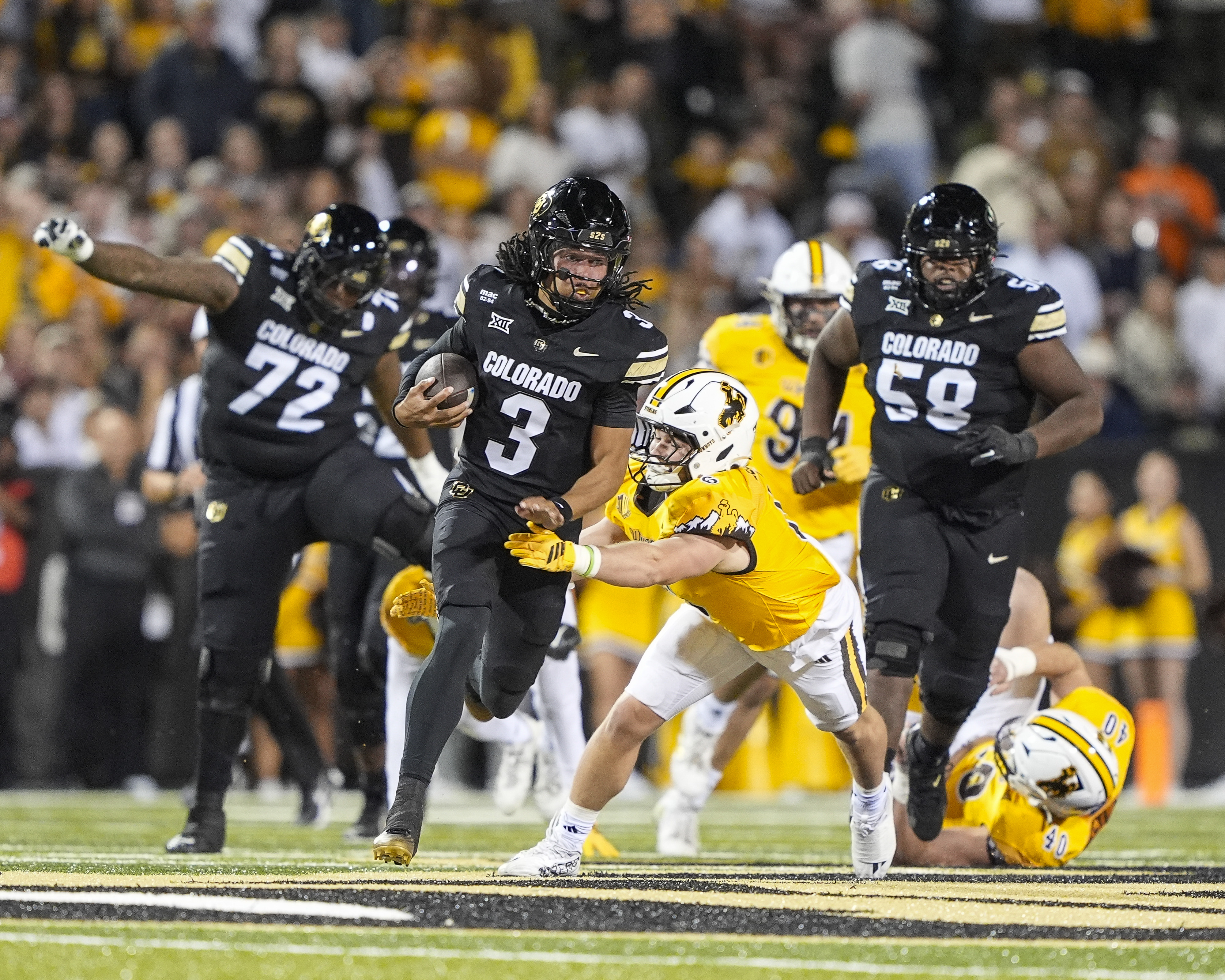 Colorado topped Wyoming last night in a non conference football game at Folsom Field in Boulder, CO. CU gashed the Wyoming defense for several big plays.
