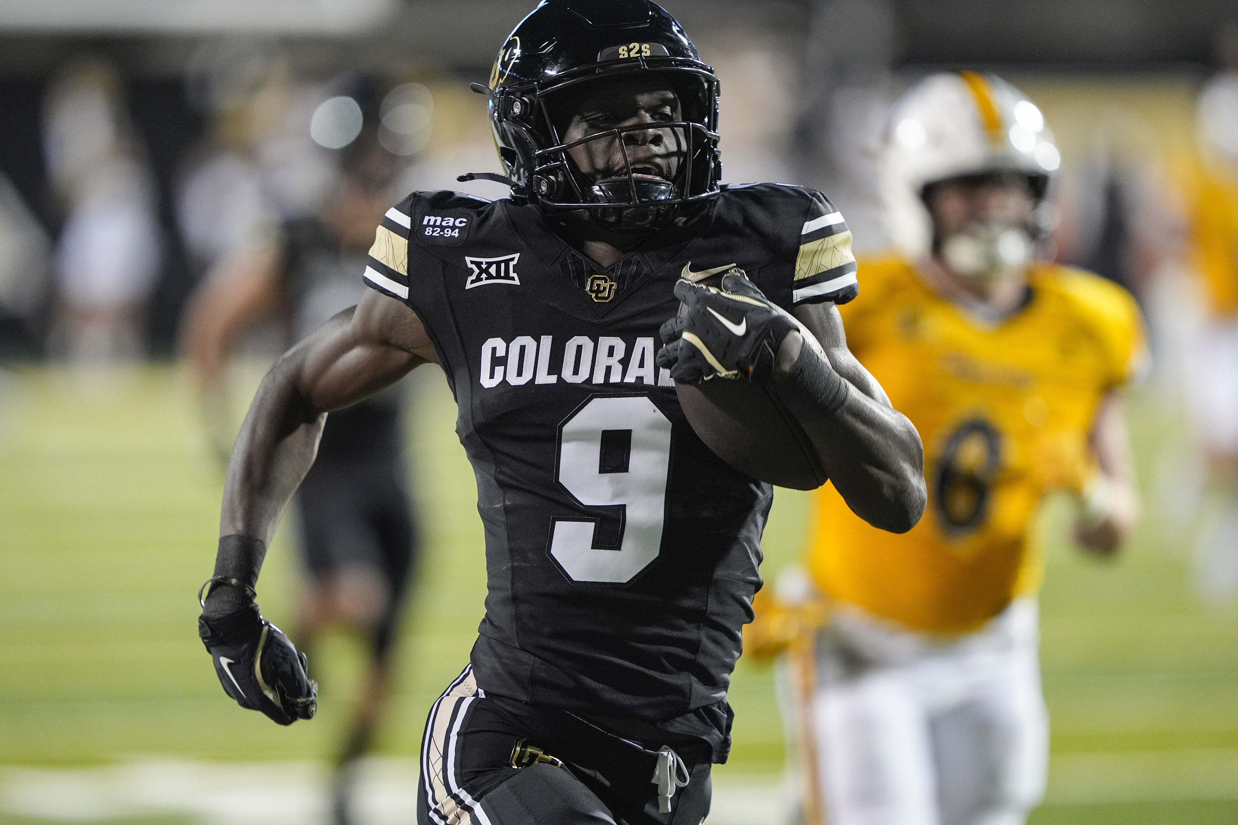 September 20, 2025: Colorado Buffaloes wide receiver Joseph Williams (8) celebrates his long touchdown in the second half of the football game between Colorado and Wyoming in Boulder, CO. Derek Regensburger/CSM.