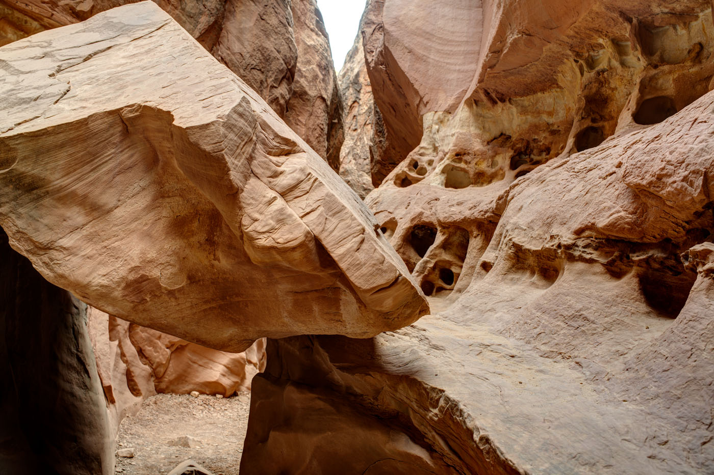 I next stopped at Goblin Valley State Park. I camped here and had fun walking around the large collection of hoodoos the park is known for. I hadn’t made it back to this place after my camera was stolen out of my car a couple of years ago at Crack Canyon. This time, thankfully, there was no drama. I took in a nice sunset and got up for sunrise the next morning. Unfortunately, I was met with rather hazy overcast so it was not too impressive. While I was at Goblin Valley, I did stop by Little Wild Horse Canyon. It is a very short hike through a nice slot canyon. It has two sections of narrows and the hike is easy. I love the swiss cheese rock that adorns the walls of this canyon.