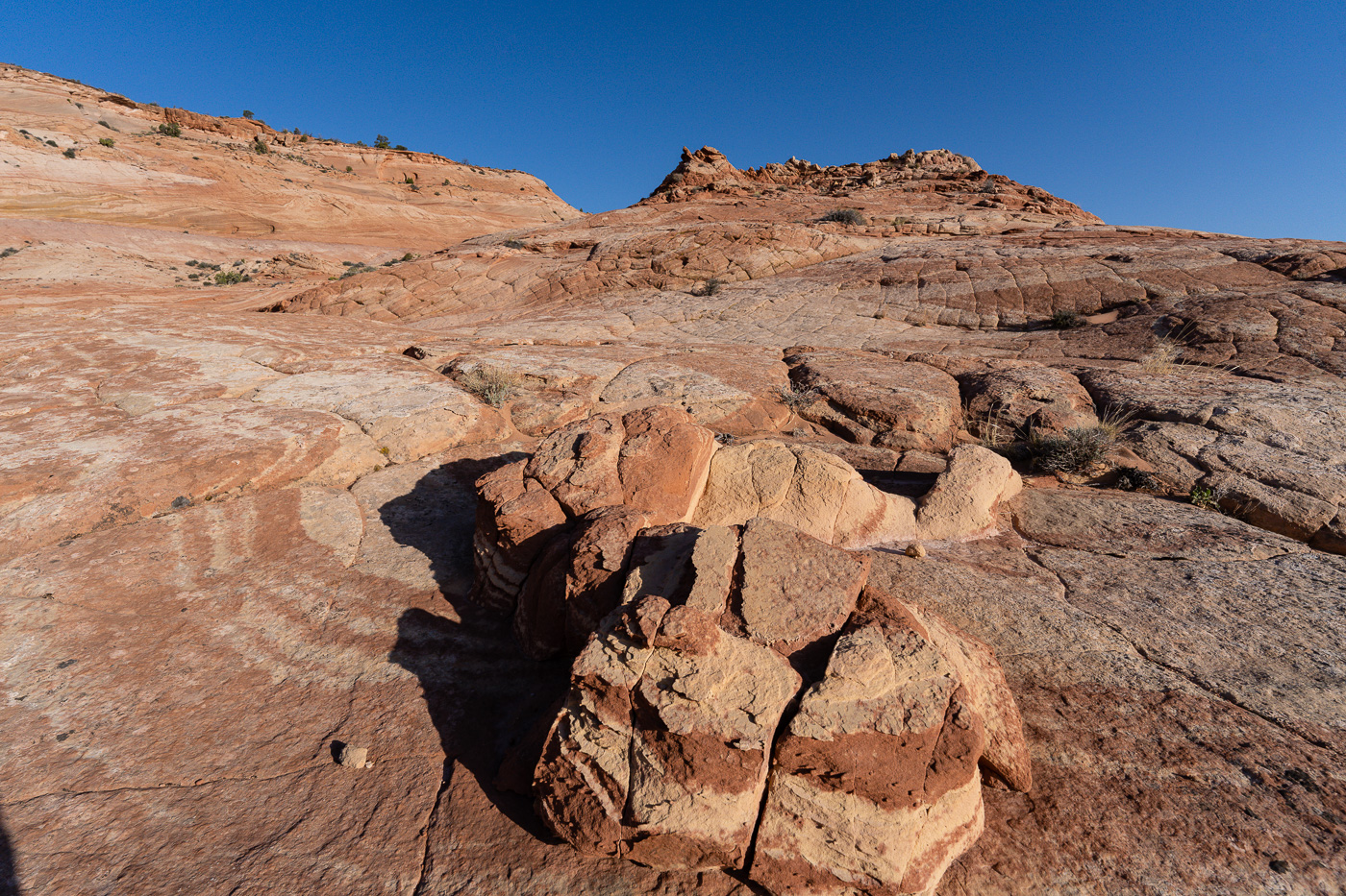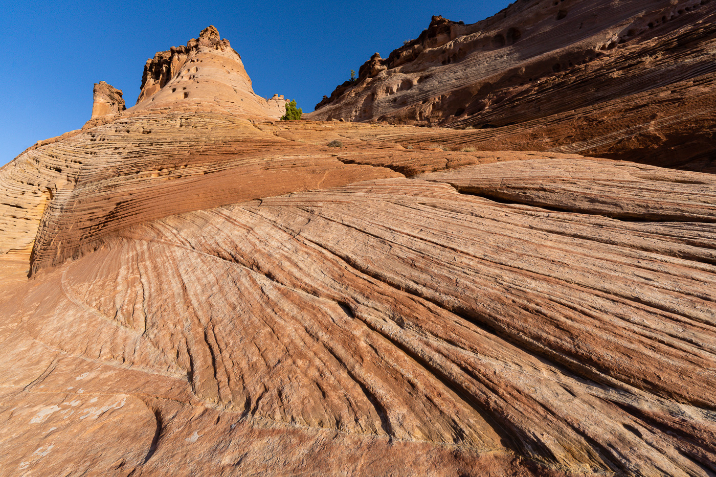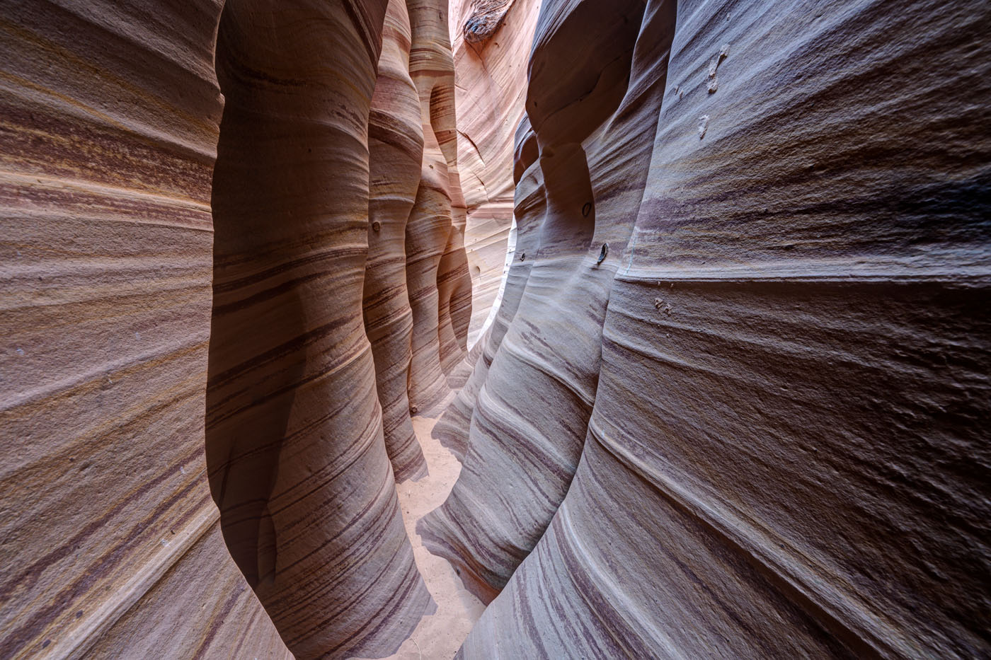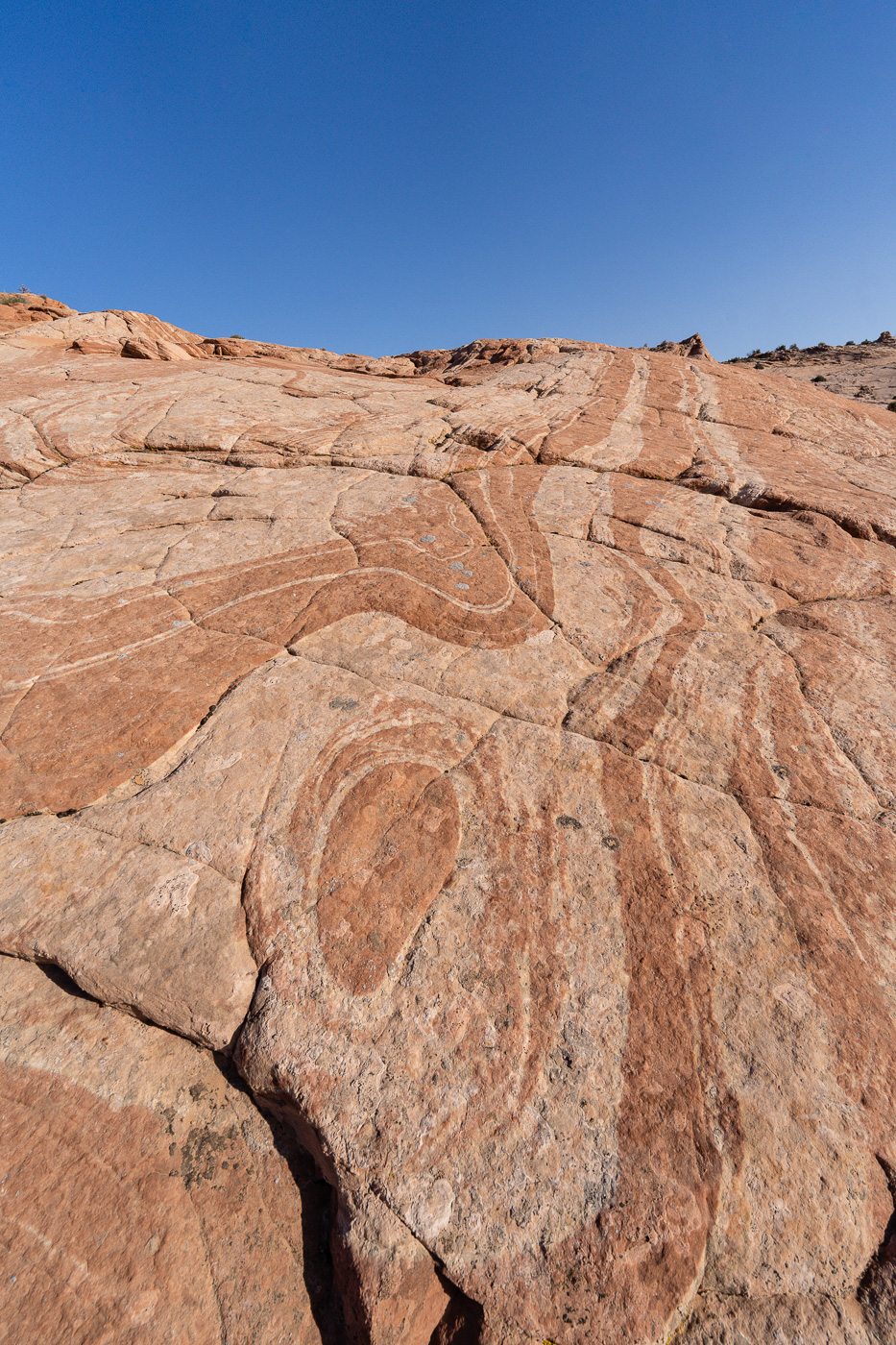 I have wanted to see Zebra Canyon for a number of years. Its striped walls draw hundreds of photographers every year and now I can see why. It is an exceptional place. Yet, I can’t help but think Harris Wash gets short shrift due to all the attention the slot canyon gets. Harris Wash itself contains some of the most fantastical rock formations I have seen. I loved exploring each bluff and butte, each one crazier than the next. Want weird rock formation and spires? Check. Wash crazy zigzag patterns in the rock? Check. Want bicolored rock? Check. Want striped rocks that disappear into the horizon? Check. I have to admit that if I ever go back to this area I will want to backpack to Harris Wash just to photograph more of these amazing rock formations.