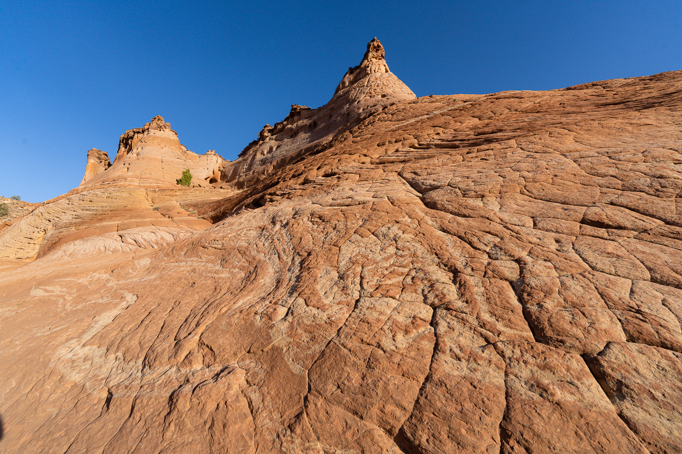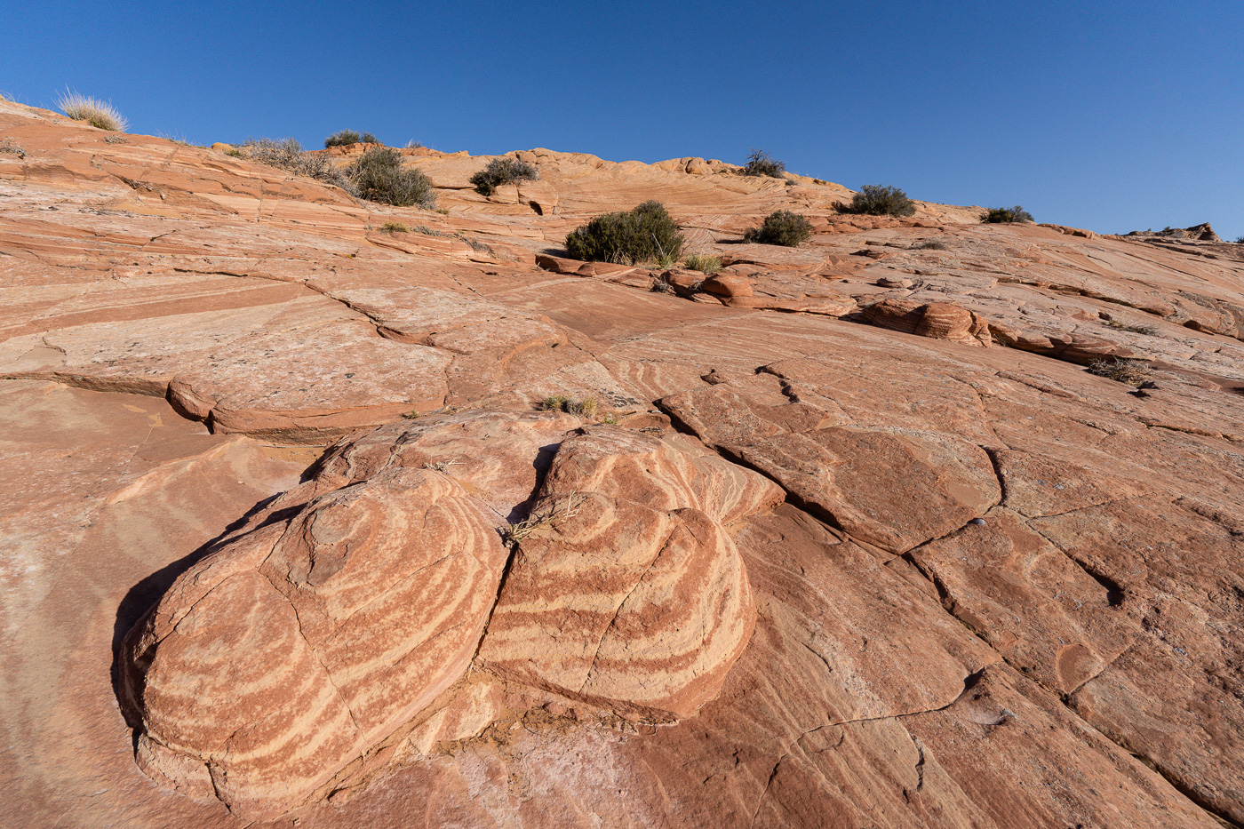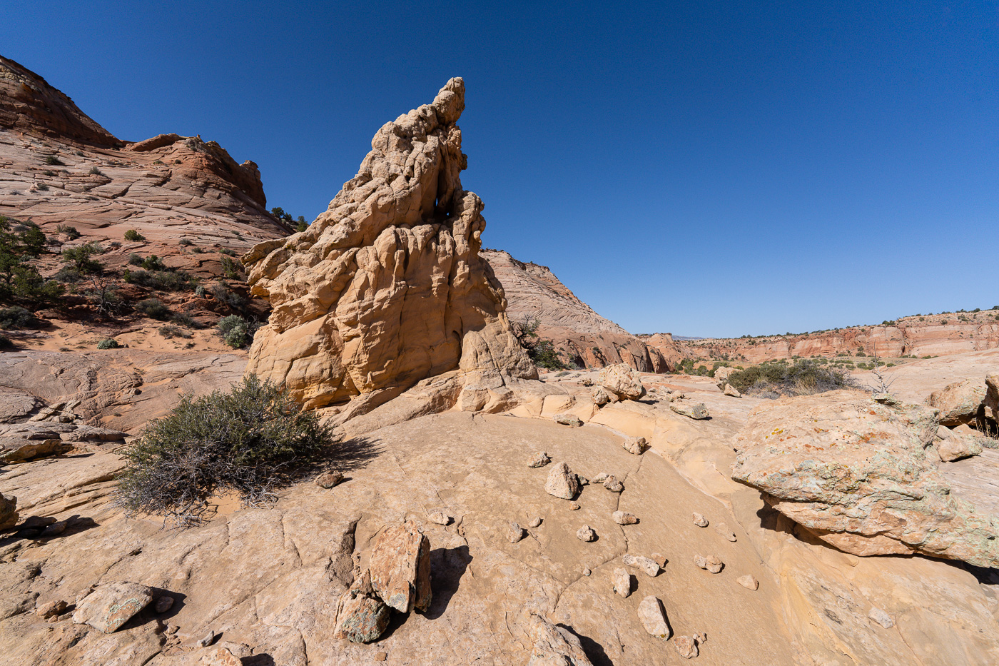 I have wanted to see Zebra Canyon for a number of years. Its striped walls draw hundreds of photographers every year and now I can see why. It is an exceptional place. Yet, I can’t help but think Harris Wash gets short shrift due to all the attention the slot canyon gets. Harris Wash itself contains some of the most fantastical rock formations I have seen. I loved exploring each bluff and butte, each one crazier than the next. Want weird rock formation and spires? Check. Wash crazy zigzag patterns in the rock? Check. Want bicolored rock? Check. Want striped rocks that disappear into the horizon? Check. I have to admit that if I ever go back to this area I will want to backpack to Harris Wash just to photograph more of these amazing rock formations.