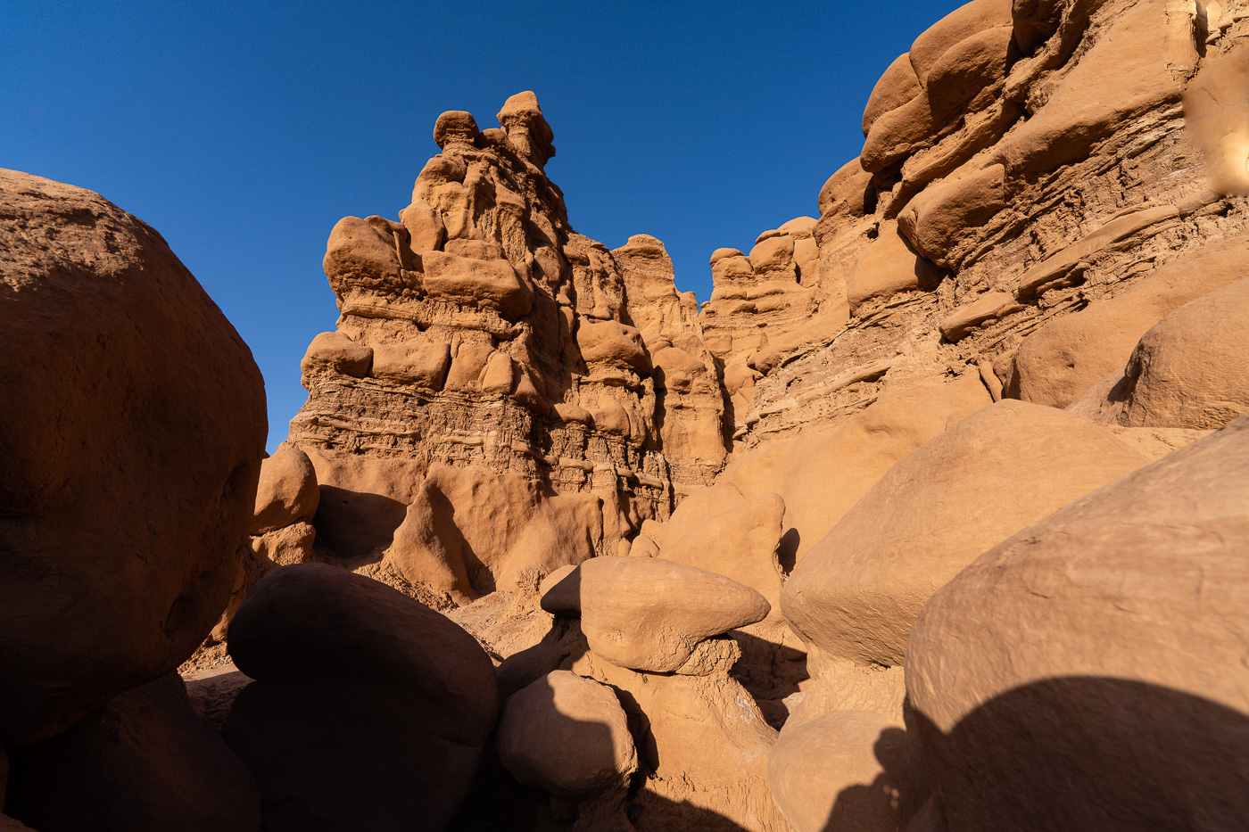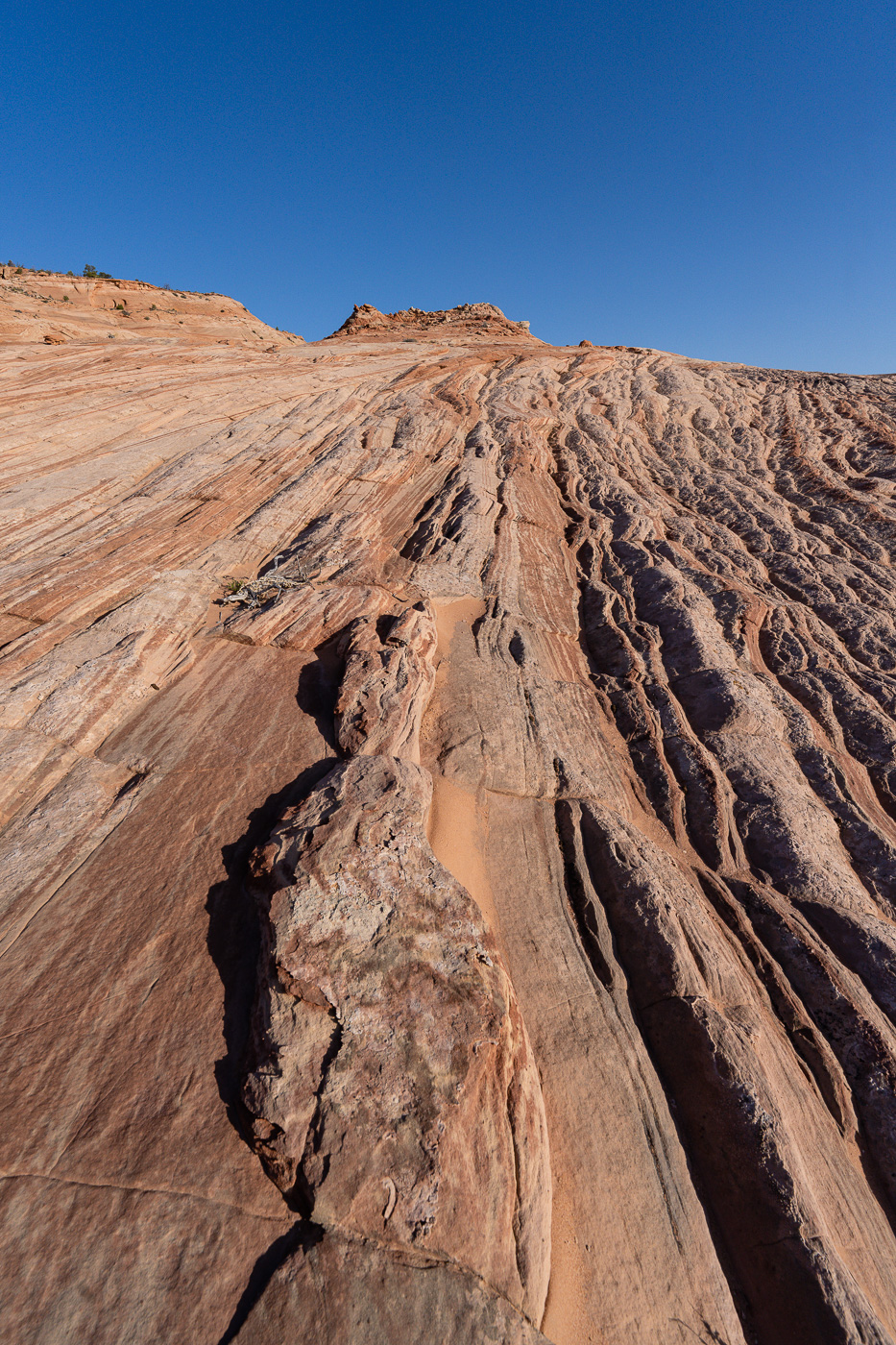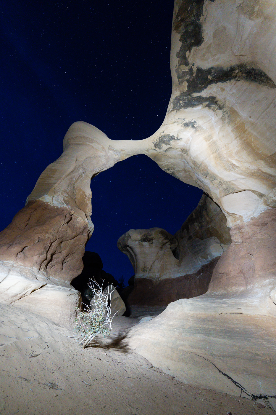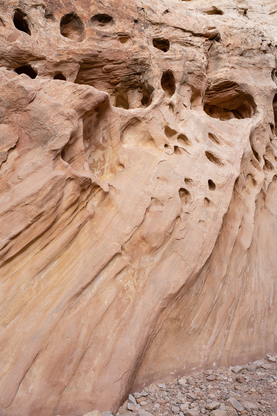 I have wanted to see Zebra Canyon for a number of years. Its striped walls draw hundreds of photographers every year and now I can see why. It is an exceptional place. Yet, I can’t help but think Harris Wash gets short shrift due to all the attention the slot canyon gets. Harris Wash itself contains some of the most fantastical rock formations I have seen. I loved exploring each bluff and butte, each one crazier than the next. Want weird rock formation and spires? Check. Wash crazy zigzag patterns in the rock? Check. Want bicolored rock? Check. Want striped rocks that disappear into the horizon? Check. I have to admit that if I ever go back to this area I will want to backpack to Harris Wash just to photograph more of these amazing rock formations.